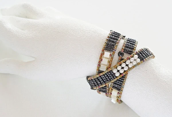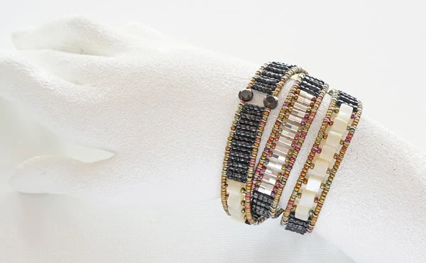 Armband „Boa“ Long Duo Black White mit Onyx, Perlen, Perlmutt, Murano Beads und Silber. Wickelarmband, Doppelarmband. Tipp: Mit einem Handgriff, durch einfaches versetzen der Schließe, können Sie selbst die Länge des Armbandes verändern. Die geschmeidige, moderne Armband Kreation mit Akzenten in schwarz und weiß.