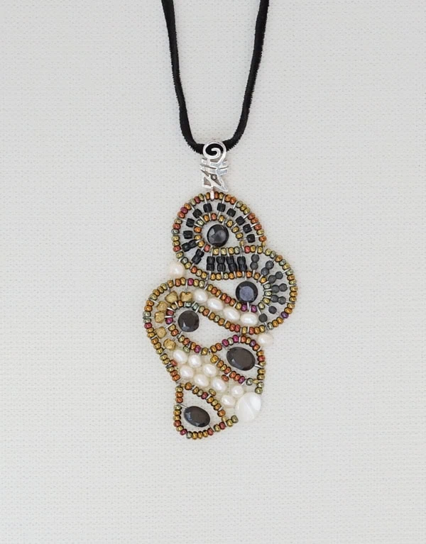 Damen Anhänger „Mamba“ Black Baby in Schlangenform mit Hämatit, Perlen, Spinell, Brass, Murano-Glas Beads und Sterling Silber 925/000 am Samtband zum knoten. Das exklusive Schmuckstück ist der Inbegriff eines dezenten, filigranen Designs
