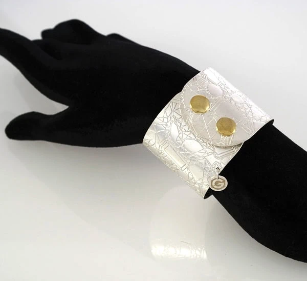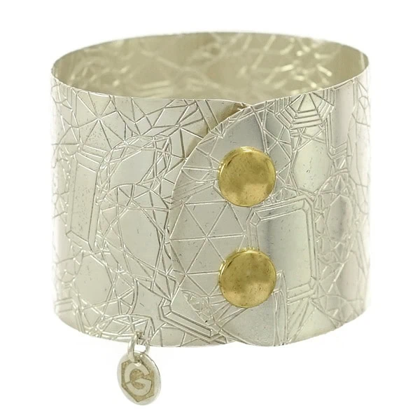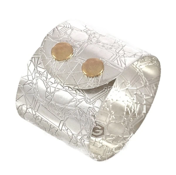 Damen Armreif der Serie „Atelier“, mit Diamant-Cut Muster, in Sterling Silber 925/000. Der Damen Armreif ist mit einer Druckknopf Sicherung – Click Button System ausgestattet. Breite: 45 mm. Alle Armspangen der Kollektion „Atelier“ haben einen sehr guten Tragekomfort durch flache, federnde Verarbeitung.