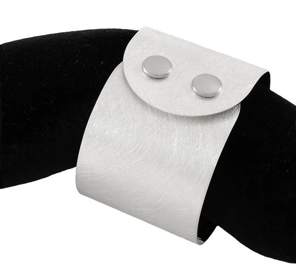 Damen Armreif der Design-Linie „Atelier“, ICE. Manschttenarmband in Silber 925/000 mit Druckknopf Verschluss. Breite: 45 mm. Durch flache und federnde Verarbeitung hat dieser Damen Armreif einen sehr hohen Tragekomfort. Dein Armband setzt Deine Individualität in Szene und trägt sich wie eine zweite Haut. Circa 50 Gramm schwer. Gegen unvorsichtiges Abstreifen/Verlieren, doppelt mit einer Druckknopfschließe gesichert – Click Button System. Wir fertigen diesen Armreif in vielen Längen, passend für Ihren Armumfang, auf Wunsch auch in Gelbgold-Weißgold-Roségold.