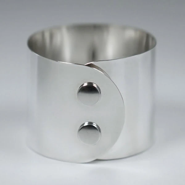 Ein zentrales Element des Designs ist die eigens entwickelte Druckknopf-Schließe. Sie ist funktional, zurückhaltend und speziell für die Atelier-Serie konzipiert. Die Schließe fügt sich harmonisch in die klare Form des Armreifs ein und unterstützt die ruhige Gesamtwirkung.