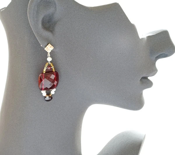 Ohrringe „Armonia“ Garnet, mit Perlen, Granat, Murano Beads und Sterling Silber 925/000. Eine Fülle funkelnder Kristalle machen diese faszinierenden Ohrringe zu einem leuchtenden Statement. Das feminine Must-have. Aus diesem Design spricht reine Eleganz.