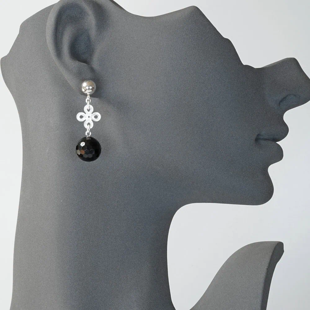 Ohrringe Weißgold Silber 925/000, . Wir fertigen diese Ohrringe auch in Gelbgold und in Rosegold. Die Einhänger mit facettierten 14mm Onyx Perlen sind abnehmbar. Extravagant und trendig. Einfach mal ausprobieren. Teile uns andere Kombinationswünsche einfach mit! Auf Wunsch sind Extra-Anfertigungen möglich. Auch bei anderen Modellen.