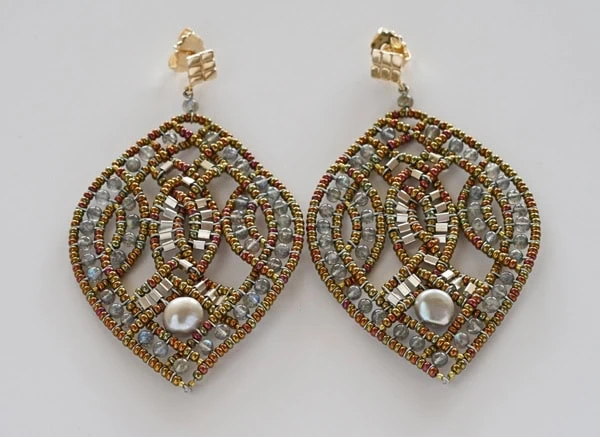Ohrringe „Net“ Grey Silver G Short, mit Labradorit, Perlen, Murano Beads und Sterling Silber. Superleichte Ohrringe mit hohem Tragekomfort. Sehr dekorativ. Dieses mysteriös schimmernden Must-have verleiht Ihren Outfits einen Hauch von grafischer Vintage.
