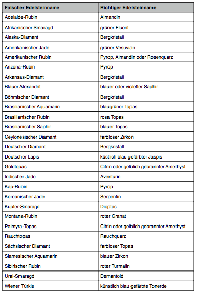 Falsche und irreführende Namen einiger Edelsteine und Schmucksteine